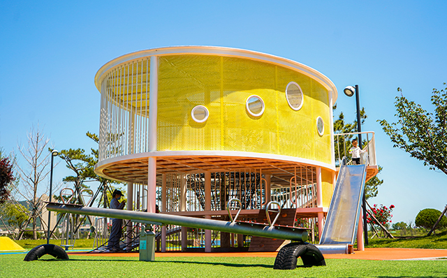 這里集合了不同形態(tài)高度的滑梯、多樣化爬網(wǎng)、平衡蕩橋、傳聲筒等互動裝置,為鉆爬、滑行、平衡探索、聲音互傳等游戲提供多種可能性。這里有適應(yīng)全齡段兒童的游戲功能選擇,豐富有趣、動靜皆宜,深受大小朋友的歡迎。