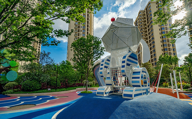 樂丘團隊就福州融僑半山花園(融僑·悅江南)大區(qū)兒童場地整體規(guī)劃,在設計之初巧妙借用“愛麗絲夢游仙境”這一構思,結合故事發(fā)展脈絡,將各游樂設施融入故事中,通過一顆被隱藏的紅心訴說如同仙境般有趣場景。福州融僑半山花園兒童場地設計,整體規(guī)劃為自然體驗區(qū)、地形活動區(qū)、主題冒險區(qū)、綜合互動區(qū)四個部分。結合蕩橋、多人秋千、動物搖馬等設施進行的設計,為不同年齡層次的兒童“造夢”。色彩斑斕的世界賦予童心,于自然中尋找童趣。