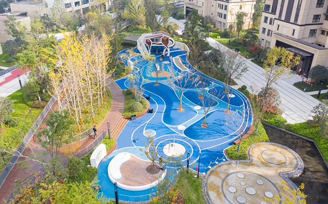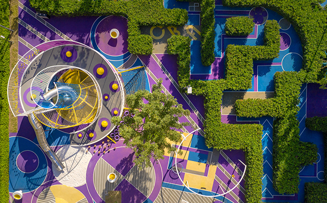 本項目延續(xù)建筑設計——“蒲公英”的核心概念,以蒲公英發(fā)散式的形態(tài)為依據、結合整體功能進行設計,使各個功能區(qū)像蒲公英的種子一樣,從中心飛向四周,精彩綻放。兒童室外活動區(qū)的設計和功能不僅能與建筑交相呼應,也能巧妙地融入到園林景觀中。
