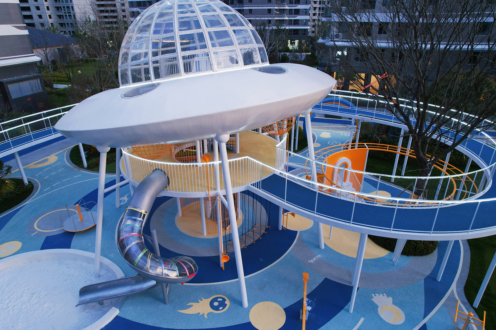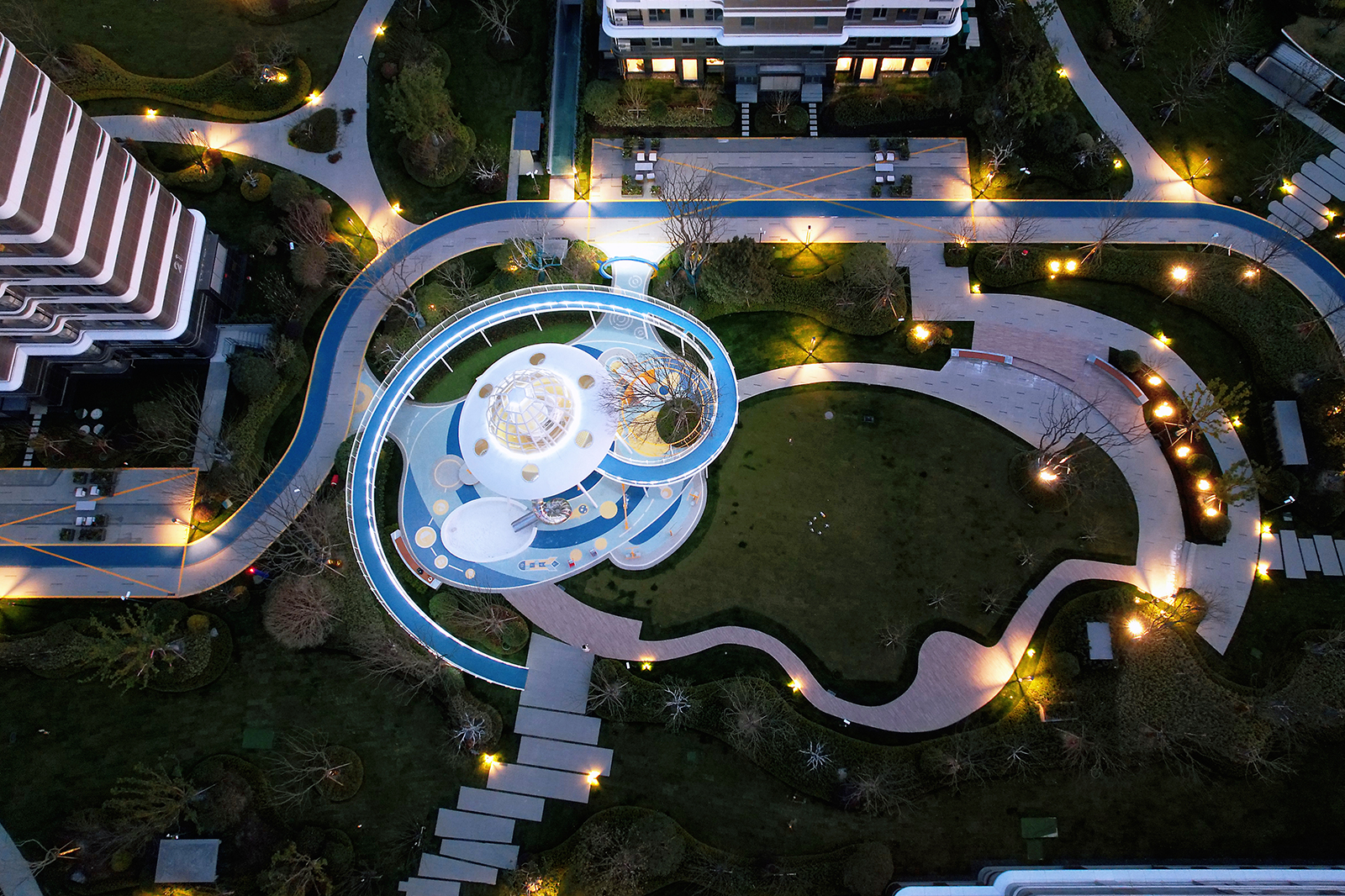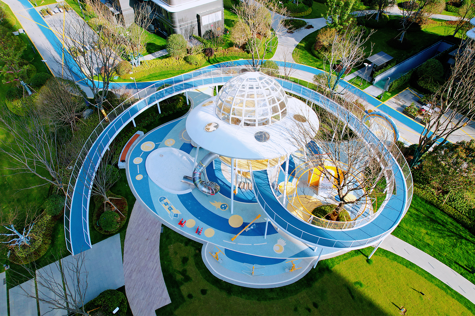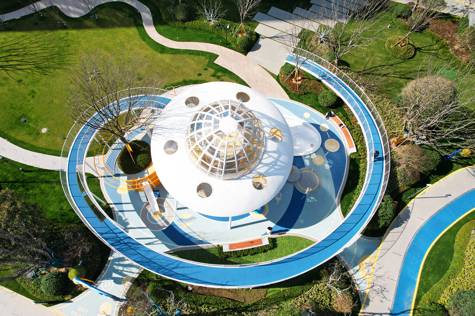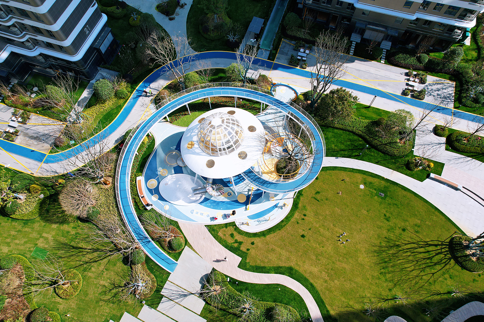 在城市高密度開發語境下,樂丘始終秉持兒童友好社區空間營造理念,致力于將星際主題的奇幻想象轉化為可觸摸的實體空間。我們以 "宇宙微縮劇場" 為設計愿景,精心雕琢的中國鐵建?花語云萃兒童樂園,正成為蘇州相城核心區10萬方社區景觀體系中最具吸引力的童趣地標。
