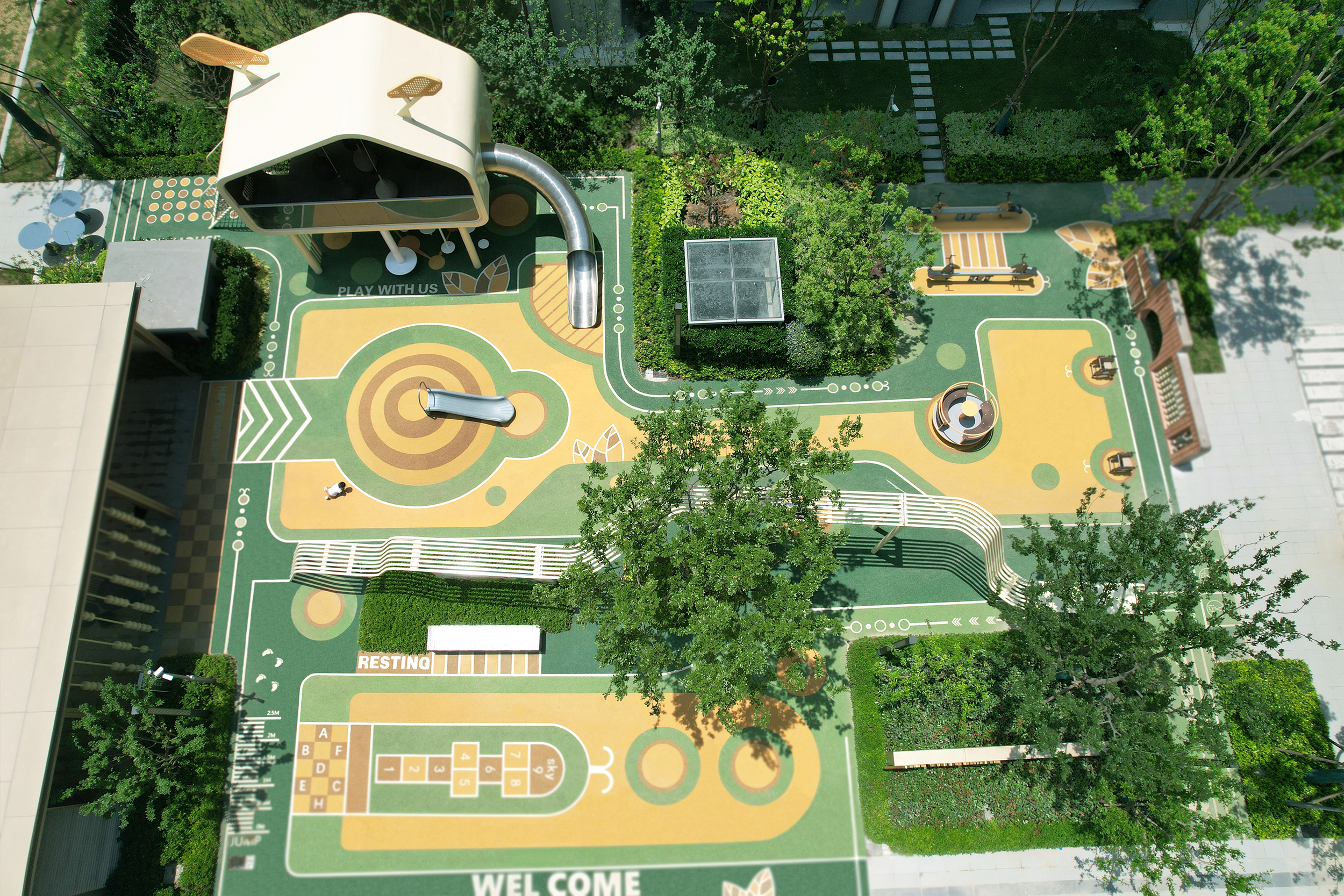 中國鐵建·星樾云澗位于上海市松江新城核芯地段,為精英圈層打造未見的高知國際住區。兒童樂園占地總面積約850㎡,分為森林馬戲團和全齡探索花園兩個場地。
