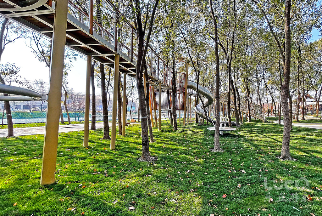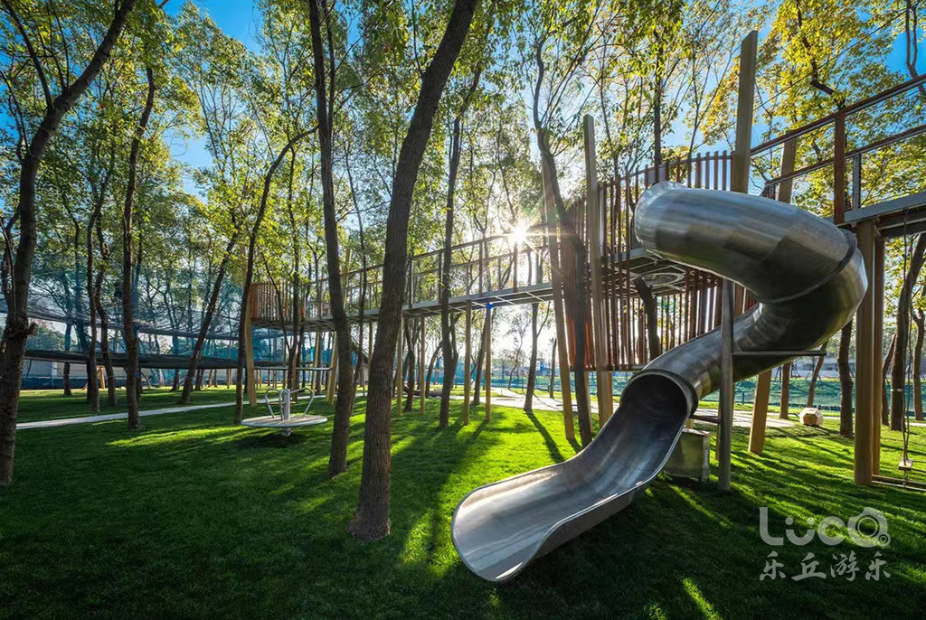 桃源森林國際旅游度假區,位于長三角一體化示范區核心位置,滬蘇杭黃金旅游中心交會點,緊鄰中國六大古鎮-烏鎮景區。整體規劃占地面積約13平方公里,擁有華東平原數萬畝水鄉森林秘境和近百座度假島嶼,森林覆蓋率約90%,被譽為“大自然的森林島嶼生態博物館”,與烏鎮僅一河之隔。場地整體自然平坦,植被茂盛,多為高大喬木。本案以“營造林海中的童趣”為設計愿景,以自然探索為核心理念對場景及游樂設備進行設計深化及落地。希望讓孩子們在這片樟樹林中,以深刻而基本的方式來認識、保護自然,開啟一場對城市兒童樂園的嶄新探索。