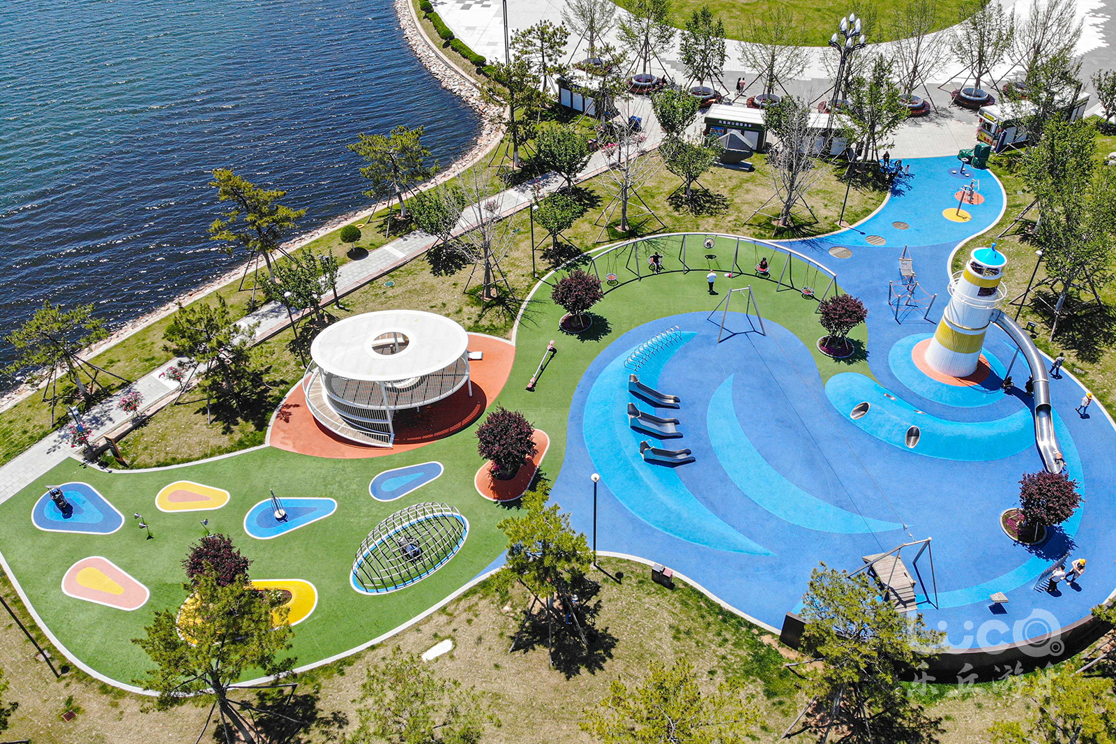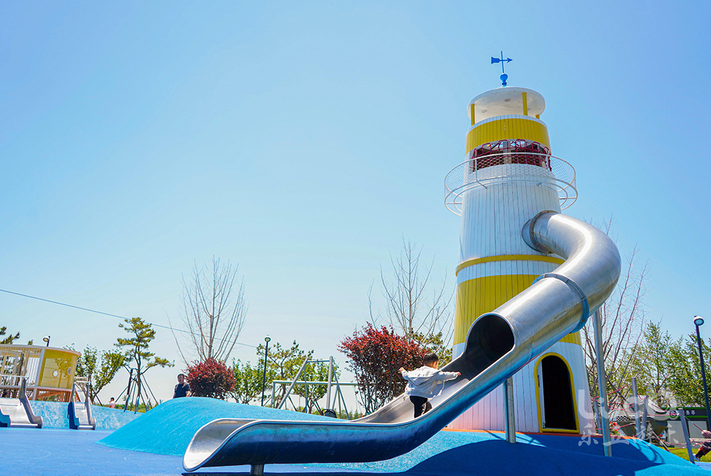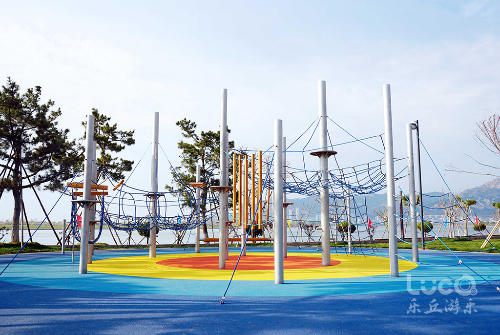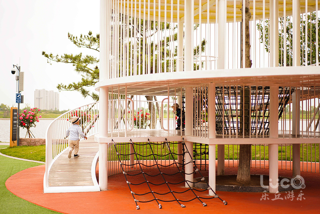 位于山東半島東部的威海市石島灣畔的鳳凰湖公園,如展翅欲飛的鳳凰,拉近了石島、赤山與繁華大都市之間的距離。設計師結合地形獨特性,將兩個場地一分為二,鳳身為兒童活動場地,鳳尾為健身運動場地。2020年初夏,聲名遠播的鳳凰湖,再一次完成涅槃蛻變,全新亮相。由樂丘團隊打造的多功能兒童樂園,正式向當地市民開放。